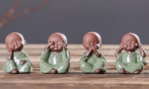 三個(gè)小和尚由“三個(gè)和尚沒(méi)水喝”的故事而來(lái),代表“禪茶一味”的理念。四個(gè)小和尚代表非禮勿聞、非禮勿言、非禮勿視、非禮勿動(dòng)。