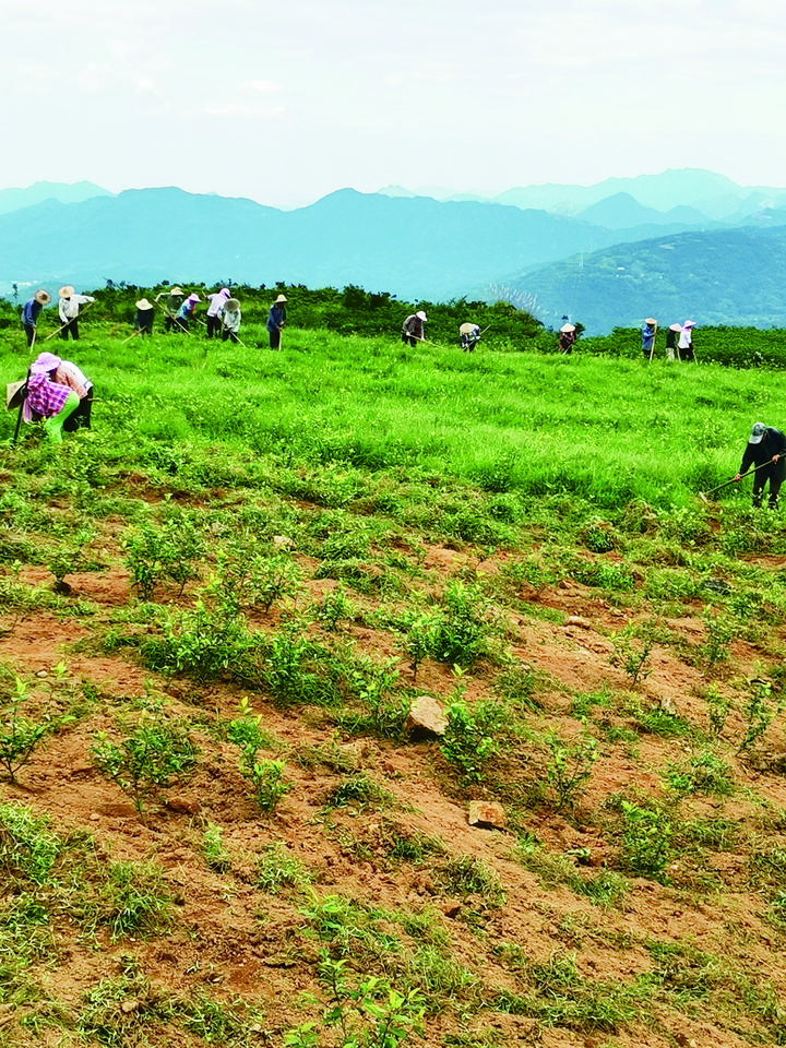 村民們在新茶園除草。