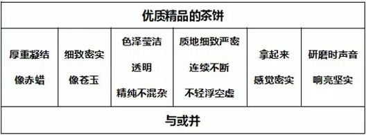 有的茶餅表面光彩而內(nèi)在灰暗,也有的茶餅內(nèi)里實在潔凈而外表質(zhì)樸。茶餅外表如同人的容貌各不相同,很難一概而論。總而言之,色澤瑩潔透明并且顏色不混雜,質(zhì)地細(xì)致嚴(yán)密而不輕浮,拿起來感覺密實,碾碎時聲音清亮,這些都可以表明是精品好茶。茶葉的鑒別,有的可以通過具體的言語和意旨來表達,有的只能心中領(lǐng)會了。