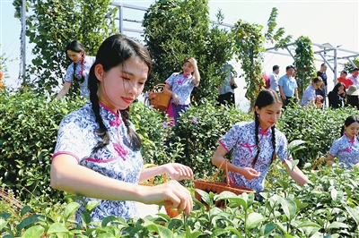 此次活動由市文化廣電旅游體育局、紫金縣政府主辦。除茶藝表演外,現(xiàn)場還開展了參觀茶園和體驗采茶、制茶、品茶等活動,并設置了紫金特色美食區(qū)和非遺文化體驗區(qū)。在漫山茶樹、悠悠茶香的自然環(huán)境中,游客在茶藝師的指導下親身體驗制茶工序,了解殺青、揉捻、烘干等傳統(tǒng)工藝。同時,在千畝茶田之上,山歌悠然響起,游客挎著茶簍,唱著山歌體驗采茶的樂趣,感受了一把茶文化的魅力。