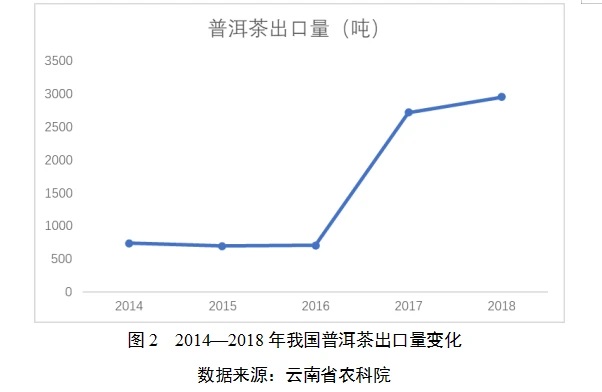 (四)出口國(guó)別多元化2017年以來(lái),我國(guó)普洱茶出口量較2014—2016年顯著增加,并呈繼續(xù)增加趨勢(shì)。2017年,我國(guó)普洱茶出口量2717.3噸,2018年我國(guó)普洱茶出口量2953.5噸。