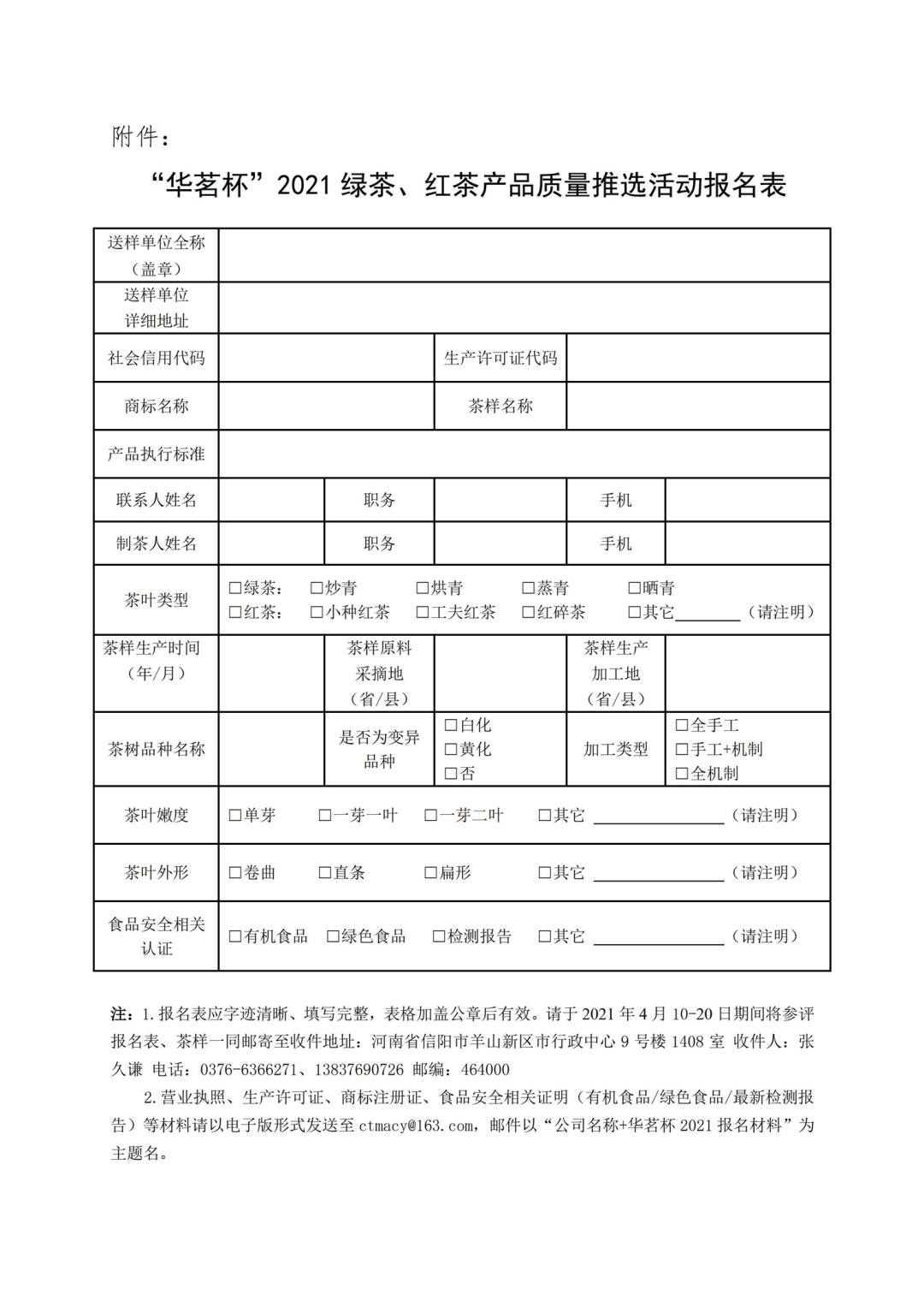 關(guān)于邀請參加“華茗杯”2021綠茶、紅茶產(chǎn)品質(zhì)量推選活動的通知