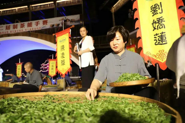 炒青、揉捻,翻炒、抖散……鮮嫩的茶葉魔術(shù)般地變緊變細,7月20日,在浦源鎮(zhèn)鯉魚溪荷花池畔由周寧縣總工會、茶業(yè)局、文旅局、茶業(yè)協(xié)會聯(lián)合舉辦的“周寧縣第二屆制茶能手賽”精彩上演,現(xiàn)場茶香四溢,引來群眾、游客紛紛駐足觀看。