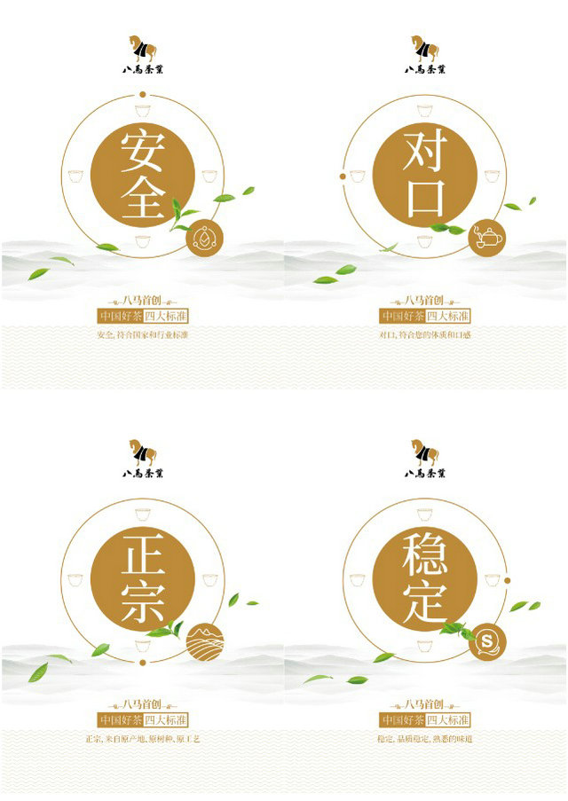 為保證茶葉品質(zhì)的穩(wěn)定與安全,八馬茶業(yè)不僅首創(chuàng)性提出中國好茶四大標(biāo)準(zhǔn):安全、對(duì)口、正宗、穩(wěn)定。從茶葉種植、加工,到物流、銷售、管理,八馬茶業(yè)的標(biāo)準(zhǔn)化體系超過30項(xiàng),在服務(wù)領(lǐng)域規(guī)范了110多項(xiàng)統(tǒng)一標(biāo)準(zhǔn),并建立全程質(zhì)量安全追溯系統(tǒng),一旦產(chǎn)品出現(xiàn)問題,責(zé)任可追究,產(chǎn)品可召回。2019年,在中國好茶的標(biāo)準(zhǔn)上,八馬茶業(yè)再度建立三大選品標(biāo)準(zhǔn):名家之作、非遺技藝、黃金產(chǎn)區(qū)。